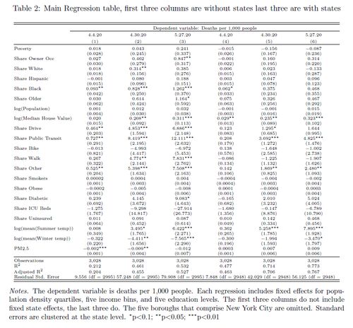 タイラー・コーエンが表題のNBER論文にリンクしている。原題は「What Does and Does Not Correlate with COVID-19 Death Rates」で、著者はMITのChristopher R. KnittelとBora Ozaltun。 以下はExecutive Summaryに記された分析結果の概要。 郡レベルの平均…